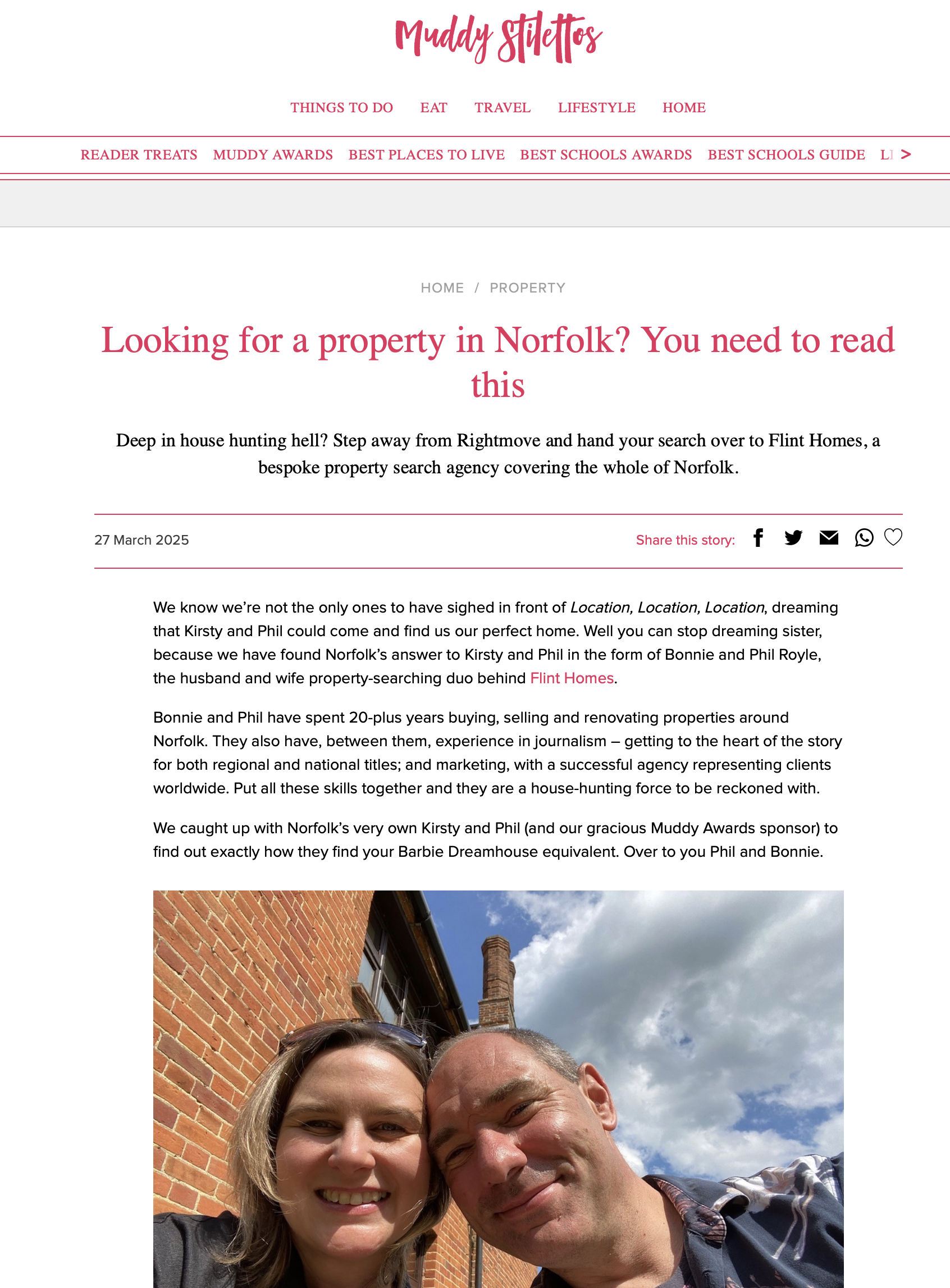 And we have been featured, multiple times (proudly as “the Norfolk Kirstie & Phil”), in Muddy Stilettos Norfolk – with a profile piece on our set up, a feature on why using a buying agent is a no brainer & on our new ‘Cherish or Change’ service for home owners stuck in a property rut. Thanks Clare.